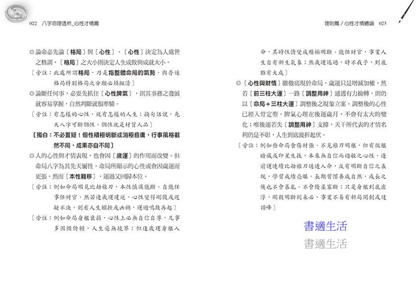 〔旁註: 有怎樣的心性,就有怎樣的人生;換句話說,先天八字可斷個性、個性就是材質人品〕〔獨白: 不必置疑!個性積極明斷或消極昏庸,行事風格截然不同,成果亦自不同〕