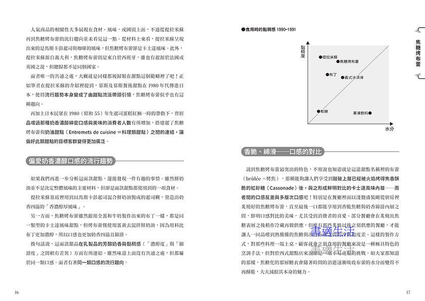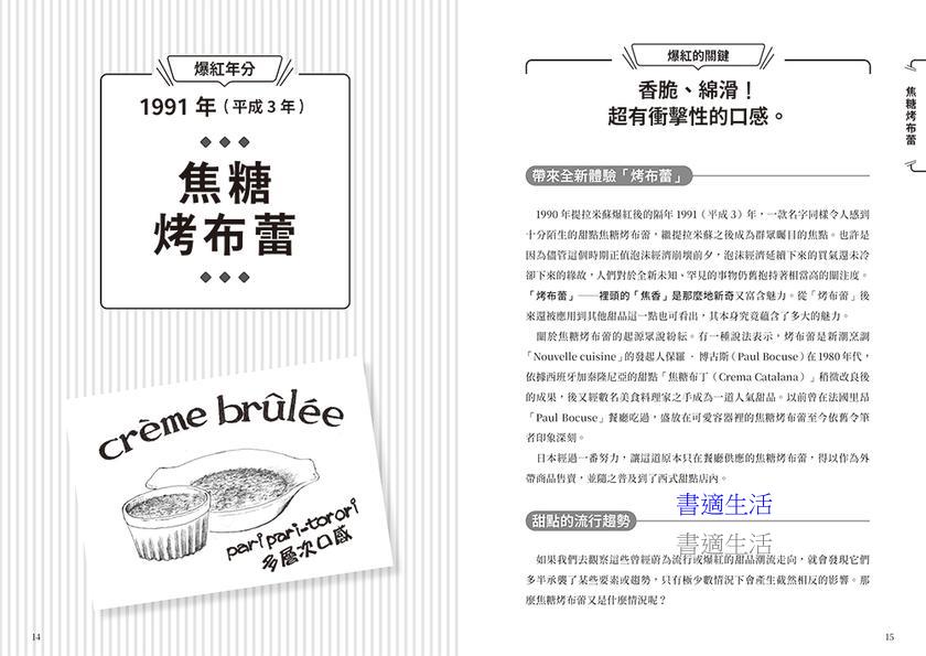 本書回顧18款人氣甜點的流行軌跡。作者山本候充以貼近日常的視角,從「人們什麼時候、為什麼想吃」出發,結合商品企劃與市場觀察,解析甜點如何在生活需求、口感設計、命名策略與販售通路的交會下,成為現象級商品。