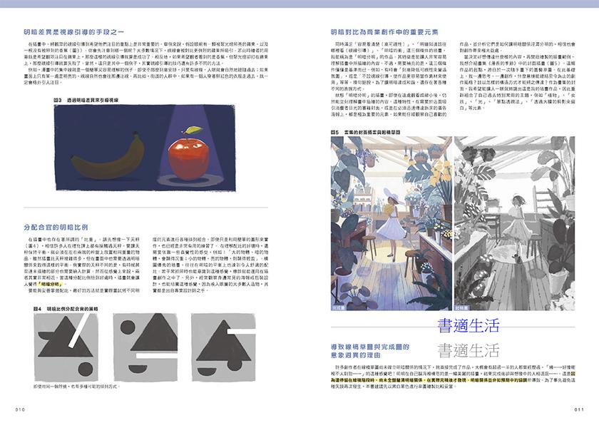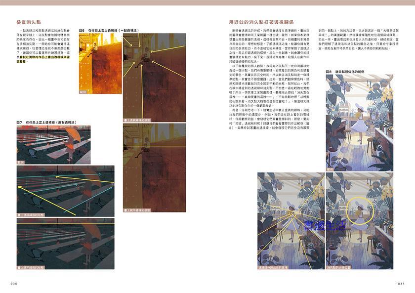 本書封面的製作過程,從創意發想→多張草圖調整→上色→清稿→細節調整→完稿,一次全部公開講解。另外,附錄更提供了老師的攝影筆記,透過照片記錄所見所聞,以便未來可以應用在繪畫上,也是豐富的靈感來源。