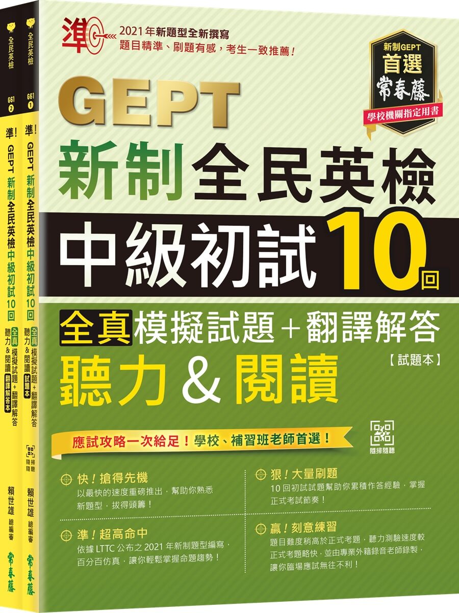 準!GEPT新制全民英檢中級初試10回全真模擬試題+翻譯解答(聽力&閱讀)