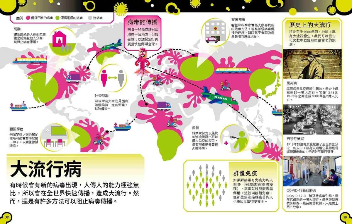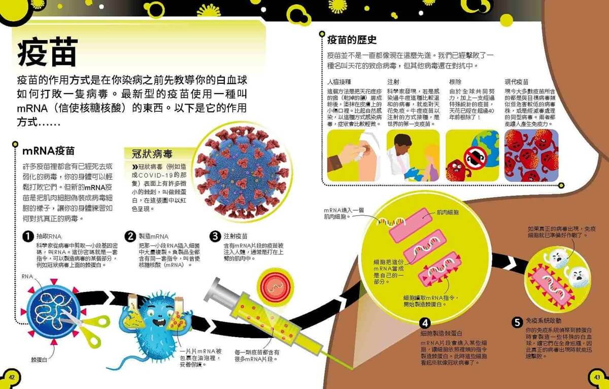 l 增訂版新增全球大流行病和疫苗的生動圖解,讓兒童了解微生物與疾病的關係。