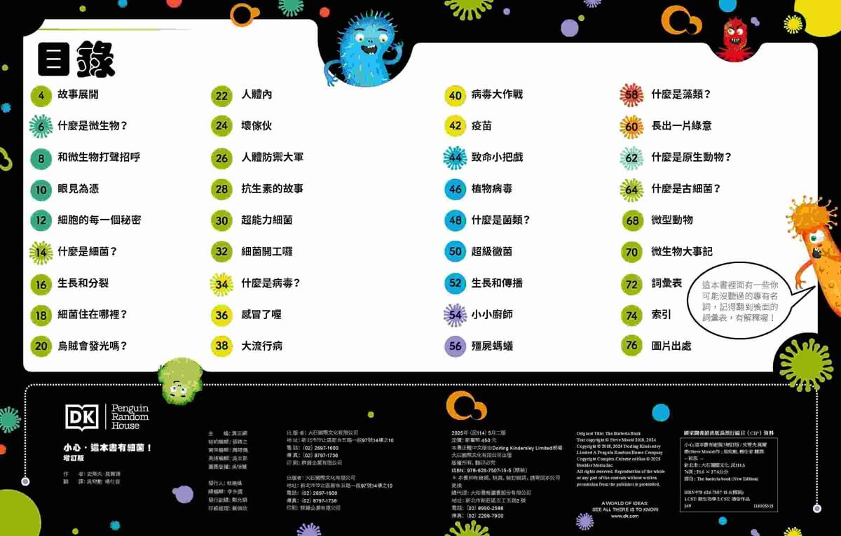 現在就翻開這本有趣的微生物學小百科,仔細看看小朋友一定要認識的細菌、病毒和其他微生物吧!