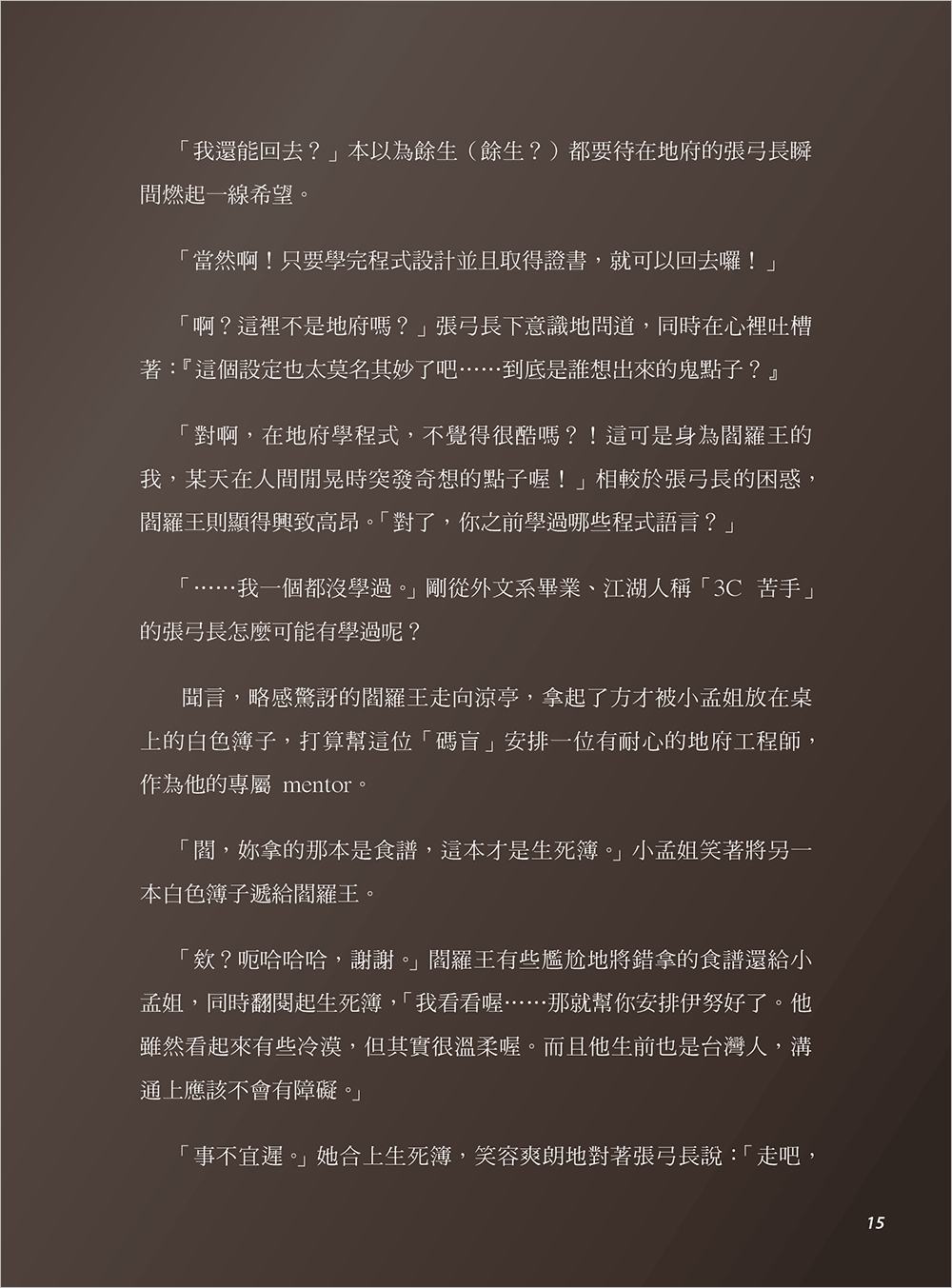 本書以有趣的故事取代枯燥的教學,讓你沉浸在地府生活圈,不知不覺跟著角色們一起學會 Python!