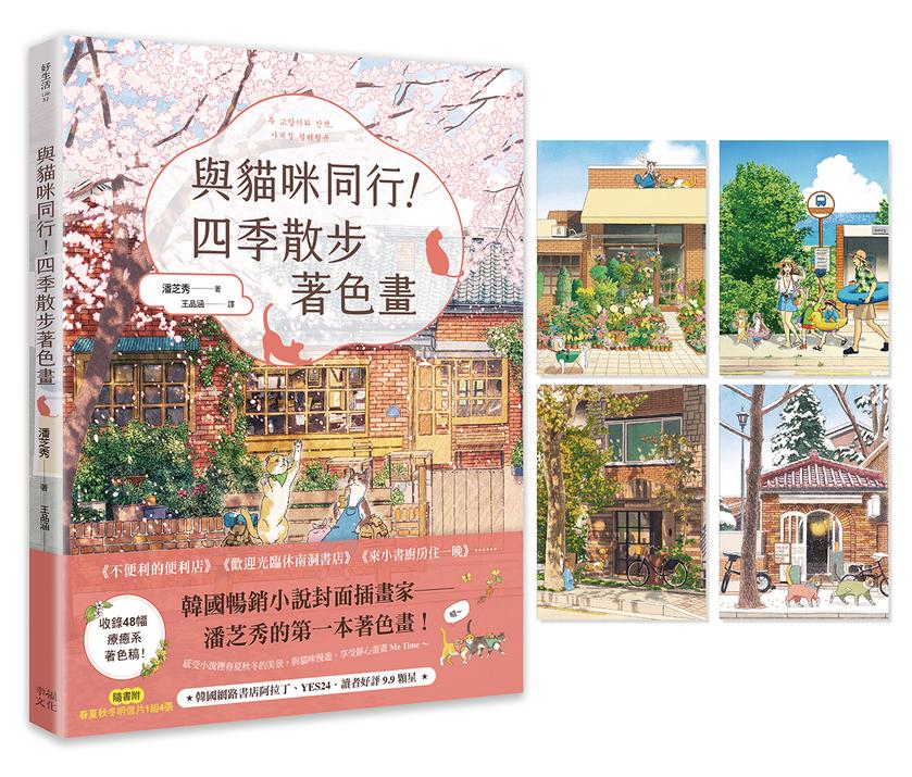 與貓咪同行!四季散步著色畫(隨書附春夏秋冬明信片1組4張)