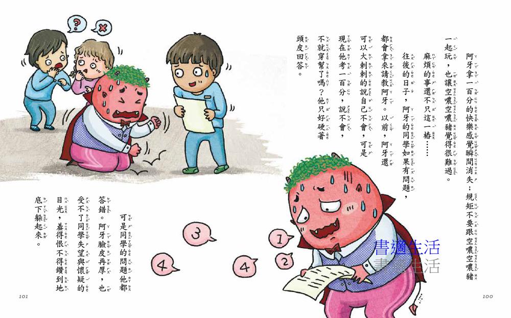 【小魔鬼遇上豬隊友】以品格教育為主軸,書中的每則故事都沸騰有勁,「笑」果十足,並闡述不同的主題,例如:面對霸凌不懼不怕、考試作弊的後悔與不安、成功與輸贏的真正價值……等,激發孩子對所見所聞產生疑問,從而啟動追求原由的力量,啟發明辨是非善惡的能力,打造好品格!