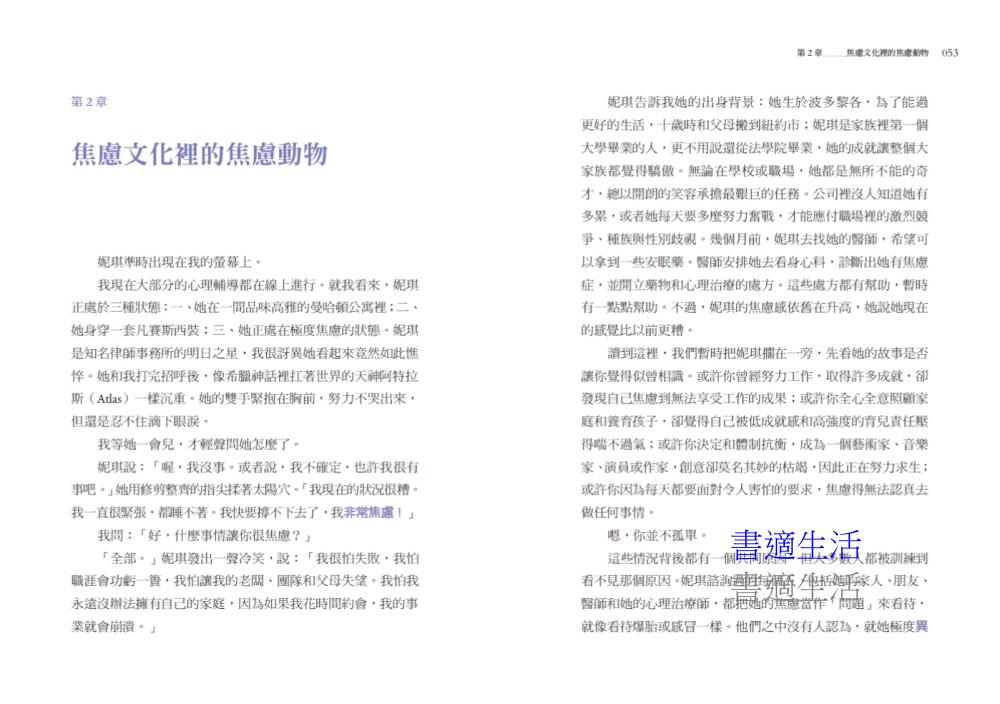 歐普拉推崇為「我所認識最聰明的女性之一」的暢銷作家、也是本書作者的瑪莎.貝克提醒我們,這不是任何人的錯。她結合腦科學、心理學與生命敎練的經驗,吿訴我們面對焦慮的三個認知: