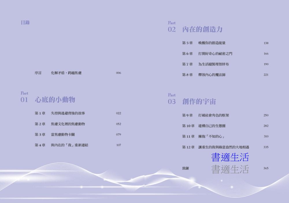 最終你會發現,焦慮的反面不只是內心平靜,而是一種全新的生活方式:能安定心靈,激發靈感,並成為療癒世界的一股力量。