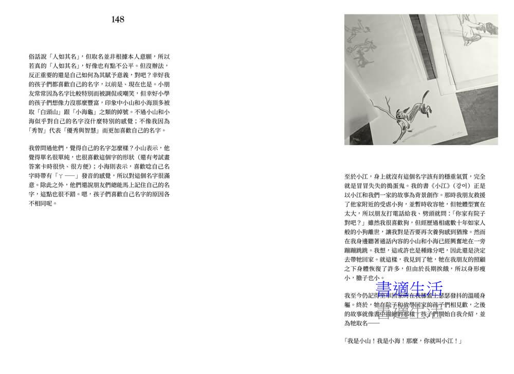 第二章〈渴望終日燃燒〉可說是本書裡最能引起讀者共鳴的章節。誠如Suzy Lee在書裡提到的,她在最需要衝刺事業的時期接連迎來兩個孩子,縱使和孩子們相處的時光讓她感到心滿意足,她亦不後悔做出這樣的決定,但人的時間和力氣都是有限的,該如何在專職作家和母職間取得平衡,是她長期以來奮力挑戰且不輕易妥協的課題。除此之外,Suzy Lee和家人及愛犬的生活點滴也收錄在這個章節裡,內容真切感人,讓人不禁潸然淚下。