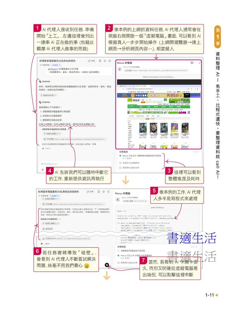 放心, 本書就是為此而生的!本書的精神很簡單:凡工作上遇到 AI 可以幫上忙的地方, 書中都會教你【用最快速、省事的 AI 工具來解決】, 不用自己摸索老半天!像是: