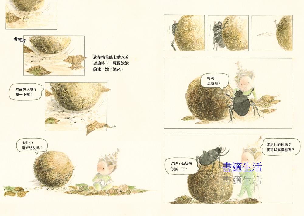 途中,他遇見了推大便的糞金龜、話很多的枯葉蝶,