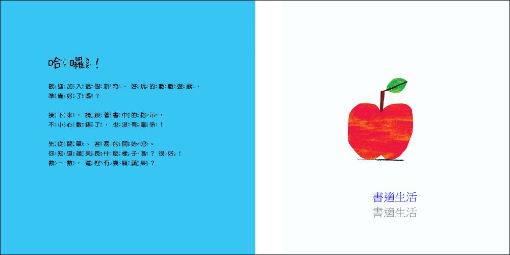 這不是一本簡單的數數繪本,而是透過一問一答的互動故事,鼓勵孩子觀察和尋找。可愛的圖畫加上有趣的指令,無論是說故事的大人或是聽故事的小孩,都會玩得很開心!