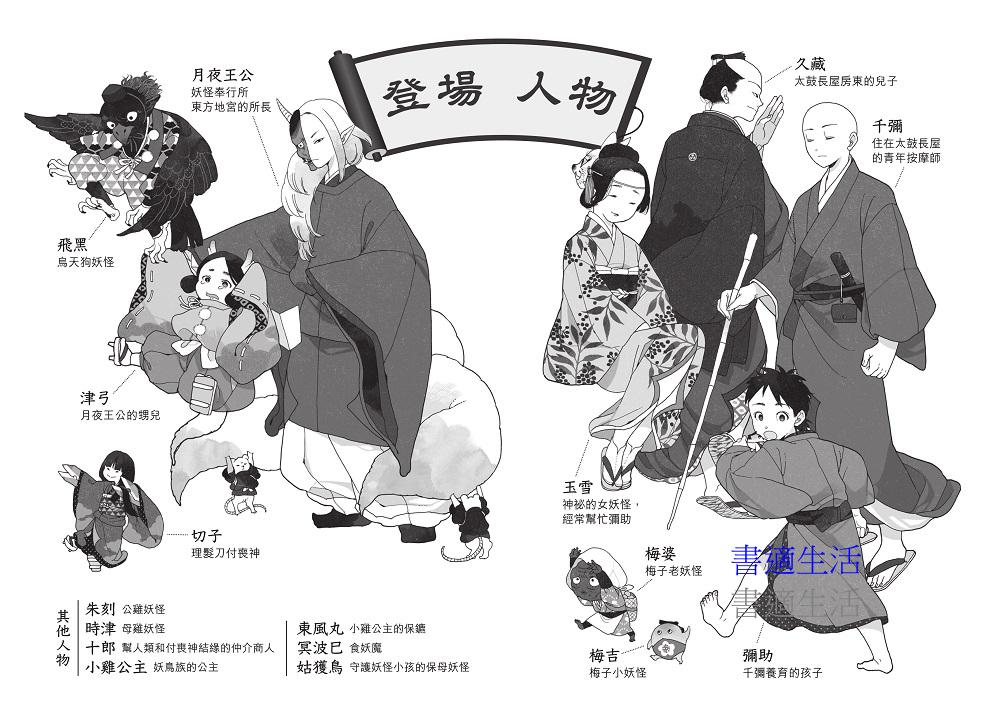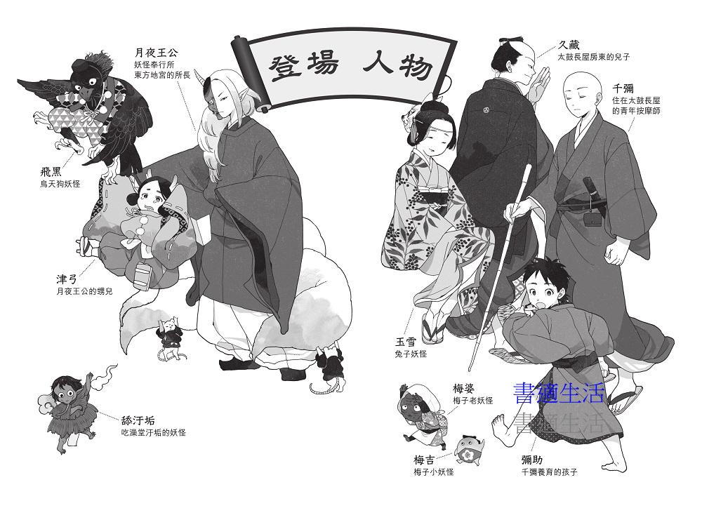 於是,一個幾乎無法與人交流的內向少年,一個來頭神祕的俊美盲眼青年,一個有三條尾巴的白狐大判官,以及無數形貌各異、個性鮮明的大小妖怪,展開了一天天喧鬧歡騰、有驚有險、卻又笑中帶淚的精采日常!