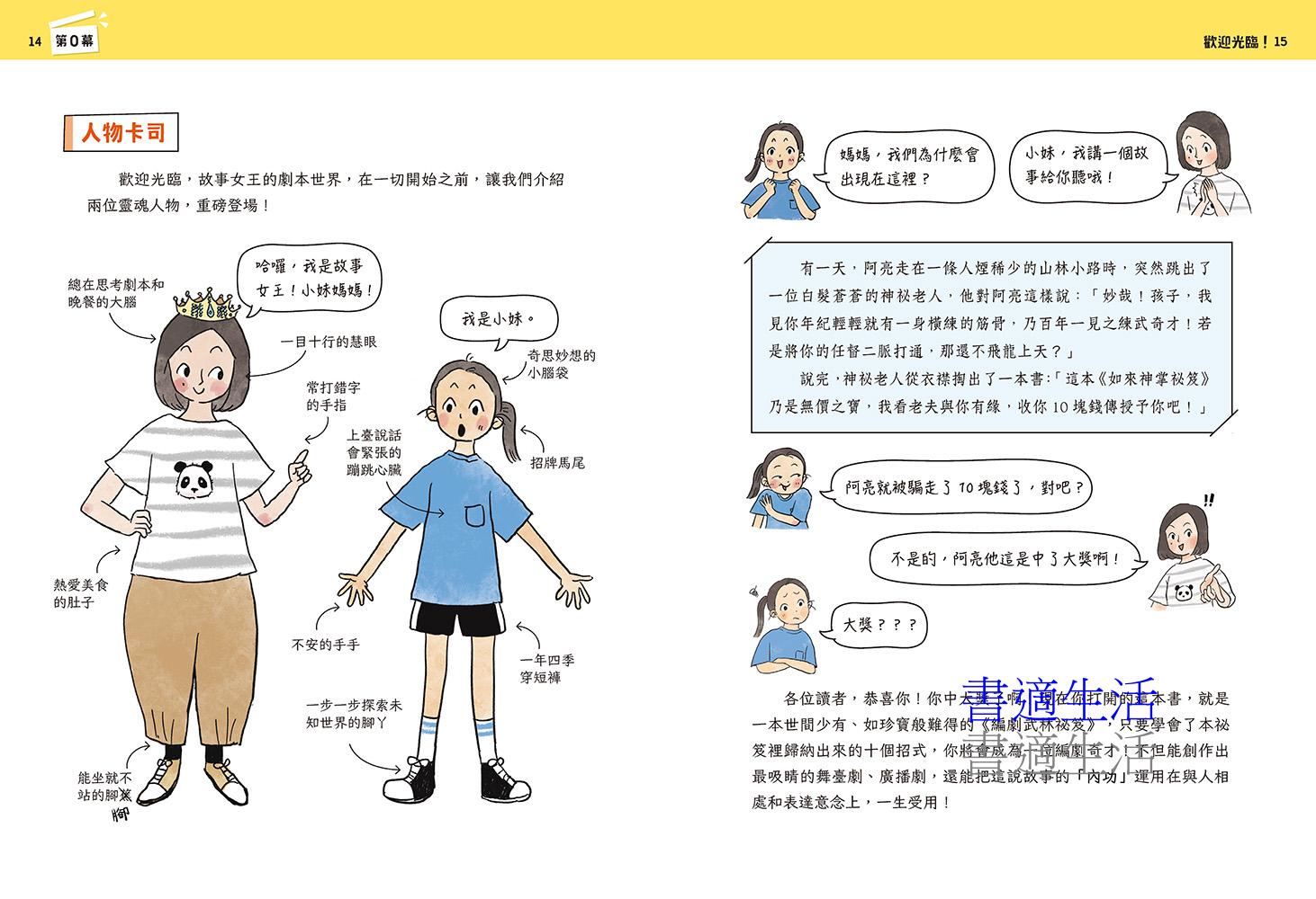 劇本創作,是現在中小學生在校學習語文課程中,最常遇到的「小型舞台劇」和「廣播劇」的基礎,也是非常有效幫助小朋友培養讀、寫、說的能力的一種方式。故事女王許伯琴在這套書中,提供劇本創作的祕訣和方法,透過她設計的遊戲與練習,小朋友很快就能掌握閱讀理解,以及分析故事結構,進而寫作出故事或文章,此外,故事女王還提供許多新創及改編的劇本範例,不論是自己在家練習編劇,或是學校老師想要組織安排戲劇表演,都能很快上手。