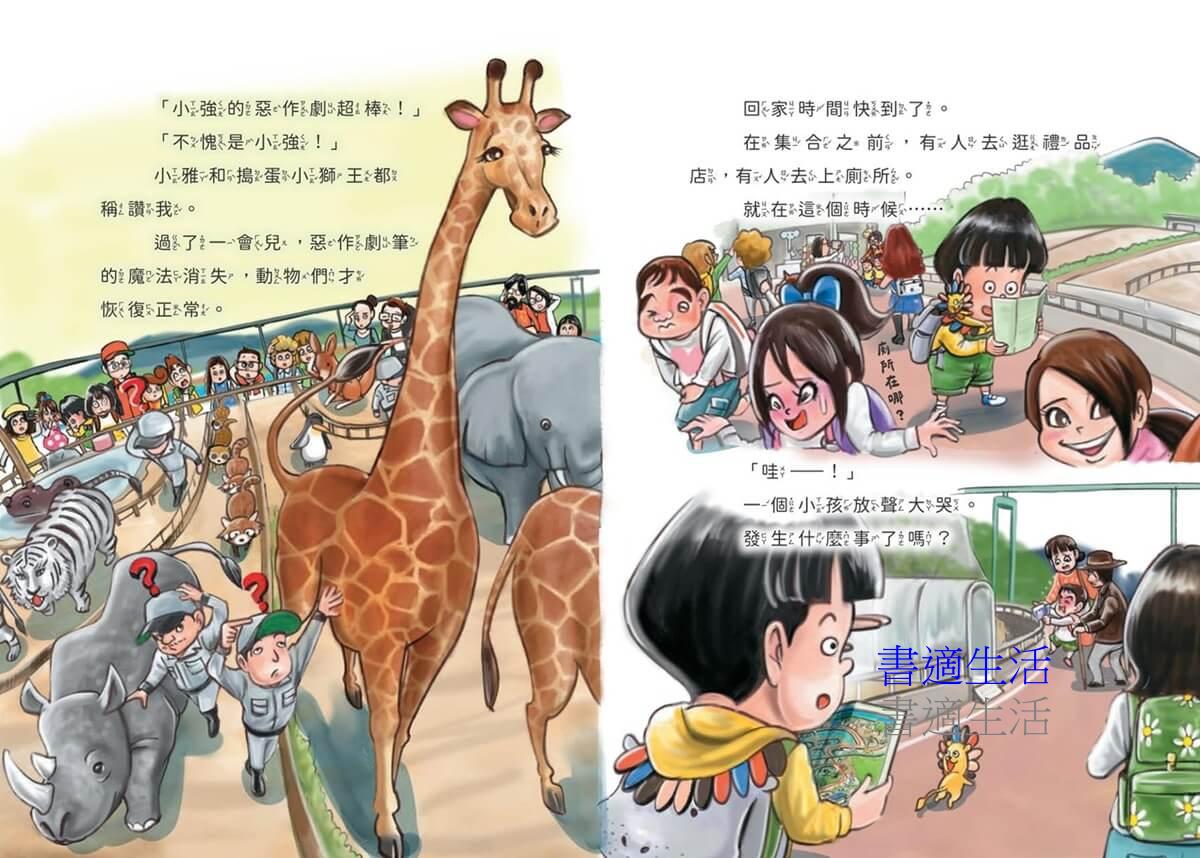 這一天,令人期待的動物園校外教學終於來了。小強帶著惡作劇筆和筆記本,繼續發揮想像力,將動物園鬧了個人仰馬翻。就在他對自己的惡作劇得意洋洋的時候,竟然害動物們……為了彌補過錯,小強應該怎麼辦?他能忍住只使用兩次惡作劇筆嗎?在這次的事件中,他又學到了什麼?
