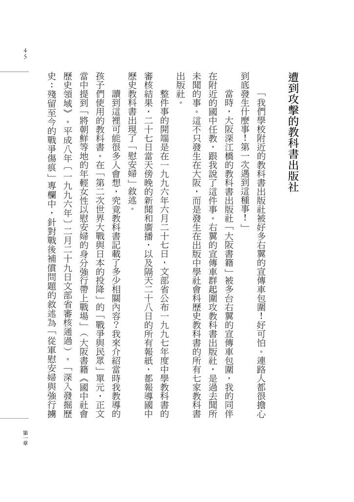 本書的作者平井美津子是一個例外。她是大阪一所公立中學的社會科老師,曾親赴韓國訪問年邁的「慰安婦」、到沖繩聽取「姬百合學徒隊」倖存者的證言,並將這些歷史化為教材,與學生共同思索戰爭的真相與記憶的責任。二十多年來,她挺住右翼政客的抹黑與校方要求「不准教」的壓力,持續地教授「慰安婦」議題。