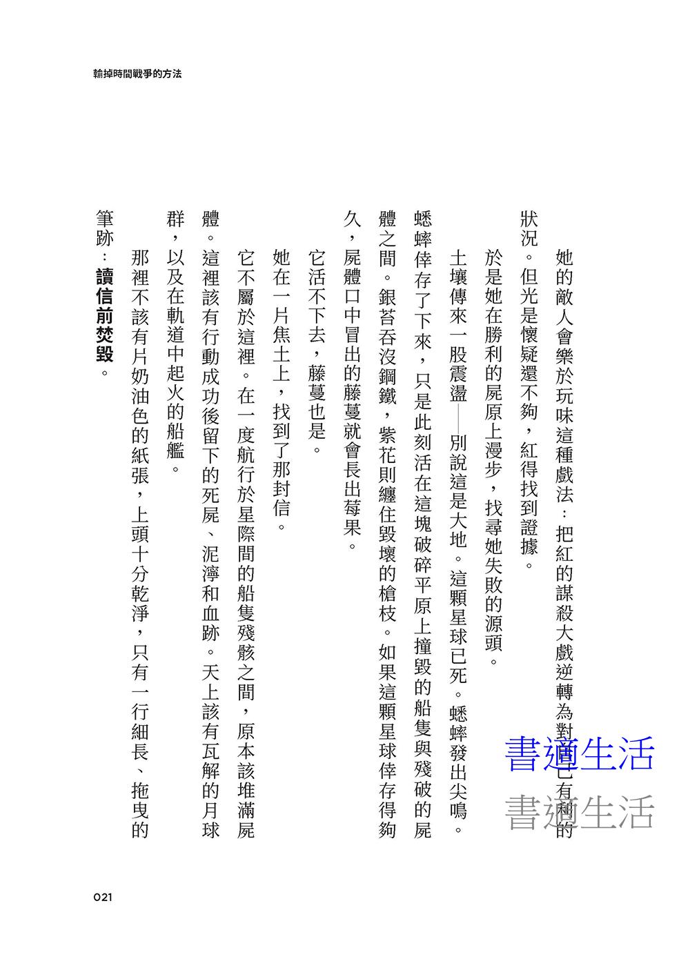《輸掉時間戰爭的方法》以書信體的敘述方式,使讀者得以親身體驗紅與藍之間的細膩思緒變化。這不只是一本時間旅行小說,更是一場關於語言、情感與身份認同的深刻探索。小說中的每一封信都充滿詩意與哲思,將戰爭與愛的矛盾推向極致,也讓角色的想法在字句間淬煉升華。