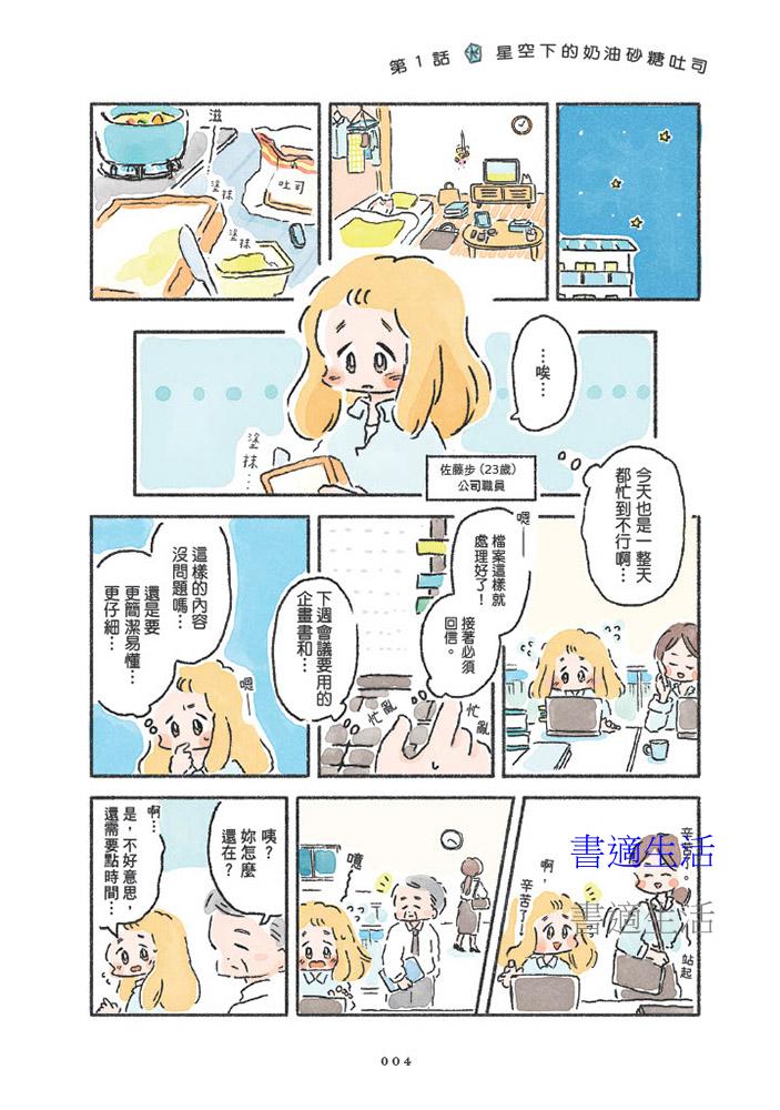 帶著滿腹煩惱入睡、鬱悶難受的夜晚,就去星屑咖啡館吧!小女孩店長會端出一杯星屑特製的甜甜奶茶,並拿出專屬於你的食譜,一起動手做甜點。每份甜點的特性不同、要注意的事項也不同,如同形形色色的煩惱有著不同的解決之道,跟著店長一步、一步地將煩惱化作快樂糖分──沒有什麼是一個甜點解決不了的煩惱,如果有,就吃兩個吧!