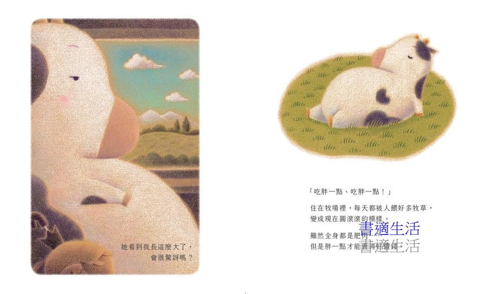 《在我被吃掉以前》故事從身為食用牛的小牛,踏上跟媽媽道別的旅程開始,全書以色鉛筆繪製,圓圓胖胖的小牛、溫柔的筆觸與氛圍,卻帶出一個令人震撼的懸念的結局?