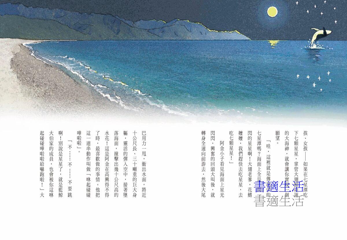 〈沒鰭〉大翅鯨阿金一心想去七星潭吃下七顆星星,希望在大海中流傳已久的傳說,能治癒媽媽的疾病。然而沒鰭突然現身同一片海域,阿金到底能不能達成願望?