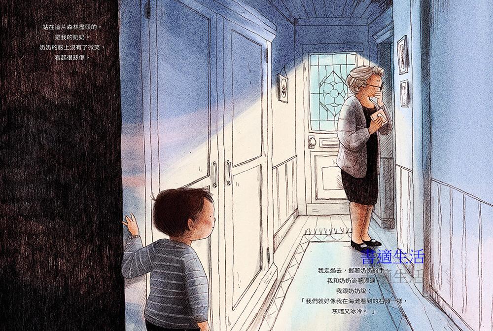 溫暖的畫風和溫馨的故事走向,故事裡的奶奶用一個很具創意的方式,幫助孫子走出喪失親人的悲傷。兼具故事情節與療癒效果的精彩繪本。