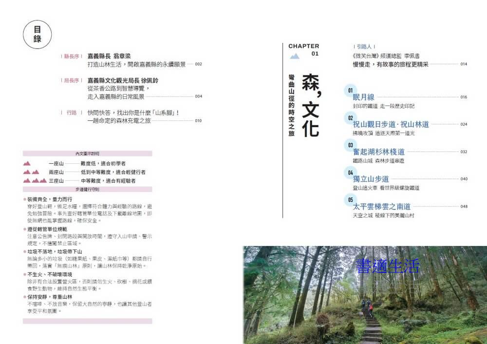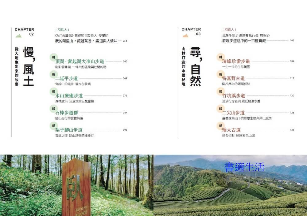 透過這三大主題單元,本書希望為讀者挖掘更多嘉義縣步道的原始林相魅力,並以文化歷史、風土產業與自然生態的多重視角,展現永續旅遊的無限可能。
