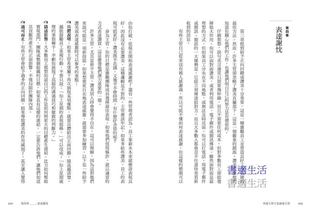 「本書最吸引人的地方在於,它不只是停留在理論層面,而是透過真實職場中的故事與失敗經驗,深入淺出地提供貼近實務的建議。例如,剛成為主管時常犯的錯誤——『過度展現權威』、與部屬之間的『距離拿捏困難』、甚至是『朋友變部屬時的應對方式』等,書中涵蓋許多讓人不禁點頭說『我也是!』的真實情境。」