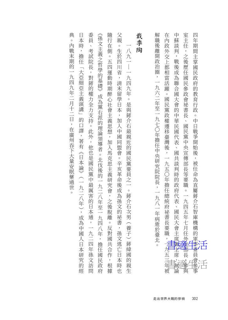 CC派與復興社派/王世杰/戴季陶/胡漢民/馮玉祥/李宗仁/田中義一/張作霖/近衛文麿/周佛海/史迪威/普萊斯兄弟/蔣緯國/陳誠/二二八事件的人們/雷震
