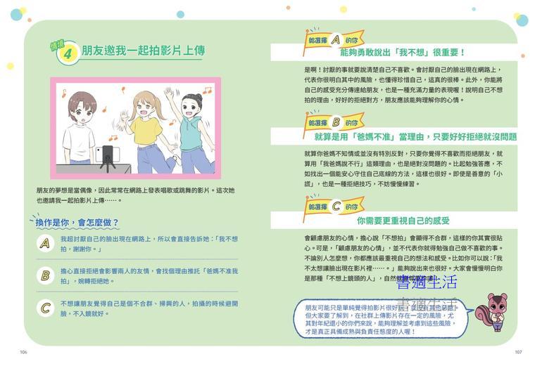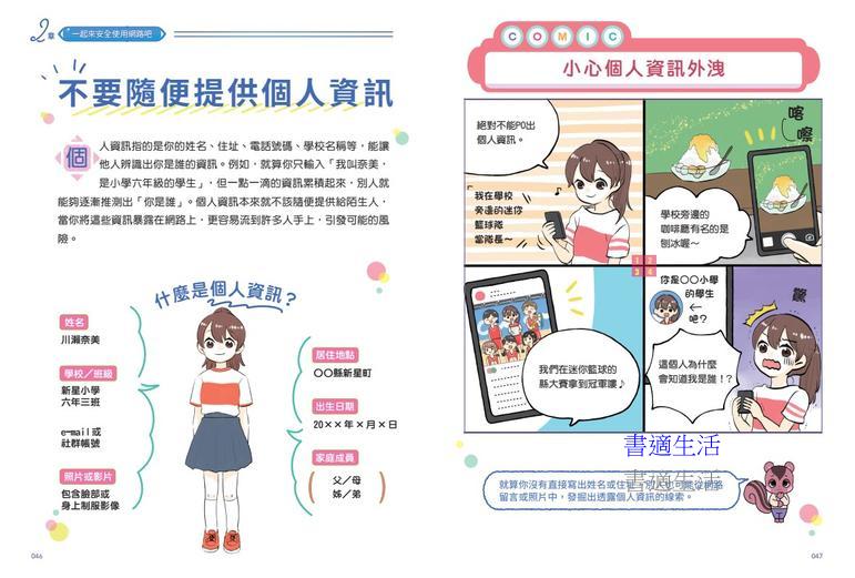 ✦「提升網路防禦力」──強者才能生存!不亂點連結、不亂加陌生人、不隨便傳自拍照、不公開個資、懂得適時向大人求助,透過「四不一懂」建立你的全知網民視角。
