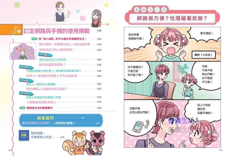 ✦資訊量豐富,對家長來說是一本內容充實的好書。加上可愛的插圖,讓我們家女兒讀得很專心。我和先生也打算參考這本書,來訂定家中使用手機等3C產品的規則。──女兒很愛這本書的小學生媽媽