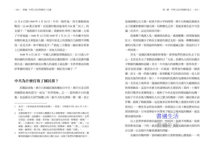 《新編.中華人民共和國史十五講》較舊版新增四分之一篇幅,書寫時序推進至晚近,並綜合十餘年來讀者與授課時獲得的反饋,重思歷史,將許多事件與問題說得更為周全、清楚。