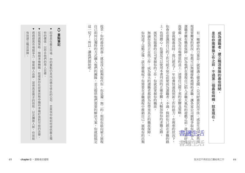 她說:「既然公司掌握你的工作,你就該掌控你的職涯。」在她的幫助下,眾多求職者都轉變了心態,成為主動掌控自己職涯發展之路的「選職者」,從履歷寫法到找工作的思考方式,都出現截然不同的轉變。她不僅幫助許多專業人士獲得高薪工作機會,進入競爭激烈的《財富》500大企業,甚至連孕婦、高齡者、中年失業人士,都在她的指導下,搖身一變成為眾多公司希望爭取的人才!