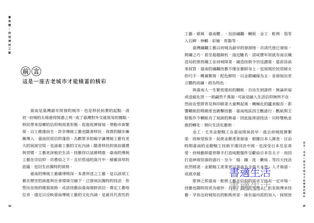這不僅是一部關於「工藝」的書,更是一部關於「人」與「城市」的史詩,作者長期深耕臺南傳統工藝研究,以田野調查為基礎,結合歷史脈絡的考證與工匠訪談的生命書寫,完整描繪府城八大工藝——糊紙、金銀細工、粧佛、茄苳入石柳、神轎、彩繪、剪黏與繡黼——的起源、演變與當代樣貌。