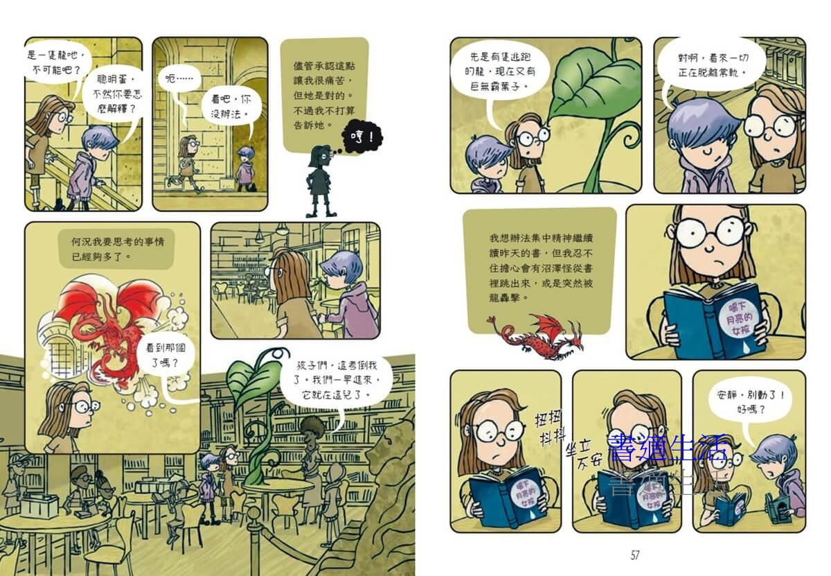 紐約公共圖書館一直是雙胞胎姊弟珮吉和特納最喜愛的地方,但是最近,這裡開始變得怪怪的……天花板上出現龍形裂痕,還有突然竄出的巨無霸豆莖。原來,書本裡蘊藏的魔法開始失控,大量反派角色從書裡逃出來,威脅要摧毀整座圖書館。