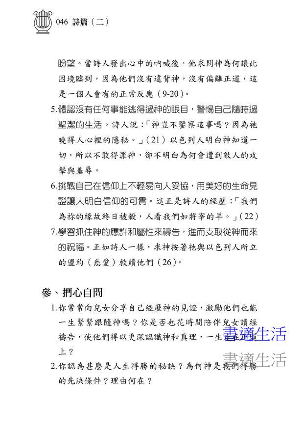 3 捫心自問:你可以透過這部分來問問自己對真理的回應情形。若它正反應你現在的屬靈光景、生活情況,需要向神認罪,或對你有更深提醒,或付之行動……,你就停下來向神禱告,千萬不要消滅聖靈的感動。