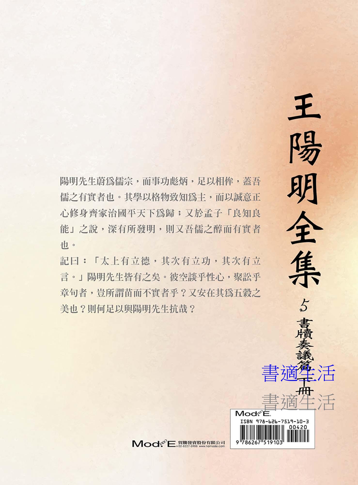 王文成公全書三十八卷,其首三卷為語錄,公存時,徐子曰仁輯;次二十八卷為「文錄」,為「別錄」,為「外集」,為「續編」,皆公甍後錢子洪甫輯;最後七卷為年譜,為世德紀,則近時洪甫與汝中王子輯而附焉者也。王陽明是我國明代中葉著名的哲學家,也是一位重要的教育家。他上承孟子,中承陸象山,發展了與程朱理學分庭抗禮的心學(又稱「陽明學、王學」),不僅在明代中後期風靡一時,而且對日本、朝鮮等國都產生了深遠的影響。