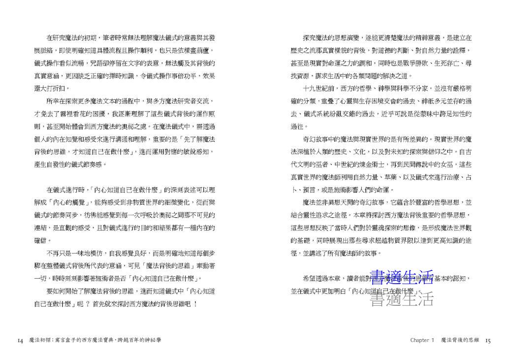 誠如書中所言:「魔法不是異想天開的奇幻故事,而是深植於哲學思想,並結合靈性追求之途徑」,《魔法初探》不僅填補了魔法知識中文化的長期空白,更兼顧了初學者與進階讀者的需求,是一本既通俗又深刻、可讀又可行的經典入門之作,值得每一位渴望真正理解魔法的讀者反覆閱讀與深思。」