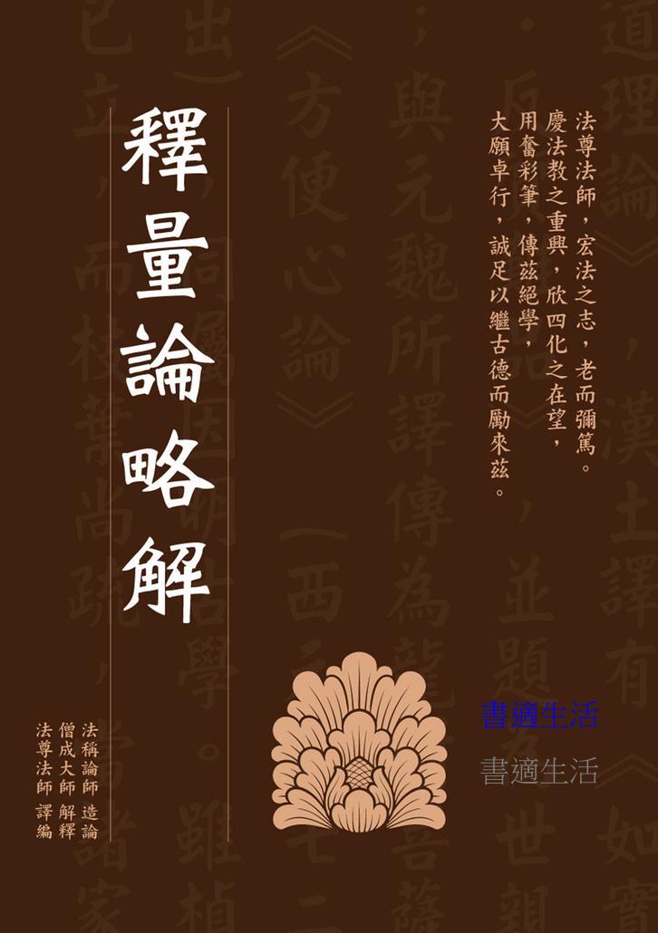 《釋量論》是法稱論師為解釋陳那菩薩之《集量論》而造之義疏也。內容分為四品:第一、自義比量品,解釋立論者自身引生比量智必要條件(正因等)。第二、成量品,解釋《集量論》的歸敬頌義,成立如來為世間之定量。第三、現量品,現量乃比量所依止之基礎,本品廣釋現量之定義、差別及似現量等。第四、他義比量品,廣釋能立因等之得失,闡明使他人引生比量智之方便。