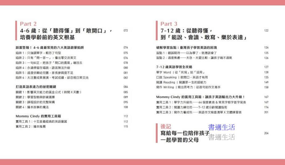 本書由英語教育者 × 四寶媽 × 家庭陪伴實踐者Teacher & Mommy Cindy撰寫,