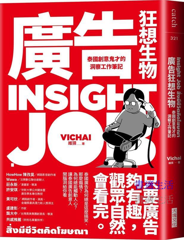 本書集結了泰國鮭魚廣告製作公司創意總監暨共同創辦人維猜的創作心路歷程,帶你走進泰國最具話題的廣告製作公司之一的幕後世界。書中不僅記錄了維猜與團隊如何從日常生活中發掘洞察,更像是邀你坐進了維猜和伙伴賓士的辦公室、會議室,甚至潛入他們的腦袋裡,看著他們如何發想、辯論、拆解問題,如何將這些靈感打磨成充滿個性的廣告腳本。