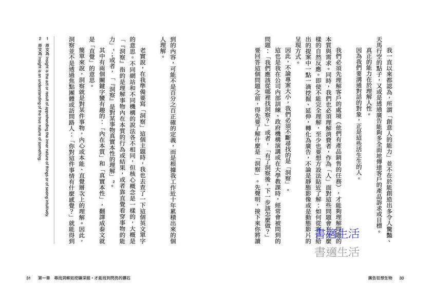 這本書不僅能讓我們這些行銷人更了解觀眾的洞察,還能掌握工作中的核心洞察,以及將想法落實為有效溝通的關鍵洞察。而這些洞察,正是行銷人實際可以拿來應用的技能。