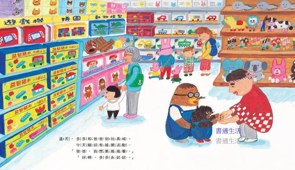 這天,多多和爸爸到玩具城,參加搖獎活動,