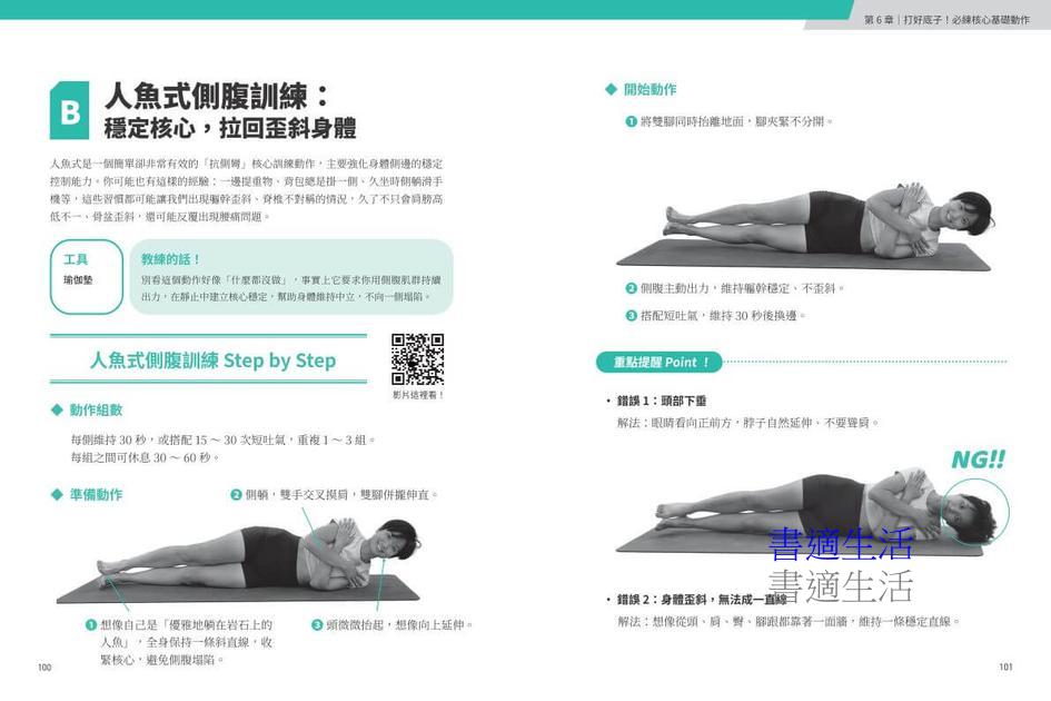 B.人魚式側腹訓練:穩定核心,拉回歪斜身體