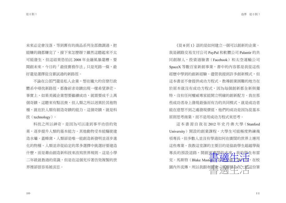 當一個有冒險精神的人願意寫書,就買來看。如果寫書的是彼得‧提爾,就看兩遍。但是保險起見,請看三遍。因為這本書絕對是經典之作。
