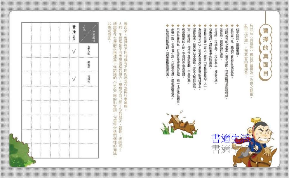 ★特色1.最具人氣的傳奇歷史人物:最夯線上遊戲主題,小學生間話題不斷的歷史人物,帶領小讀者深入三國人物—曹操—的內心,一窺群雄們不為人知的祕密。