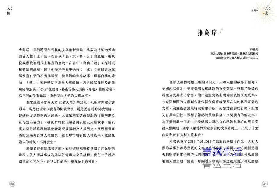 翻開這套書,猶如在微光中前行,看見人心細緻的紋理,也看見島嶼如何從創傷之中學習共生。天光並非自然降臨,乃由無數人曾經的苦難與堅持所照亮的方向。