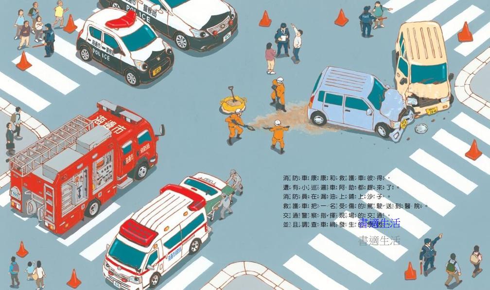 在路上執行不同任務的車子,最能吸引幼兒的眼睛。