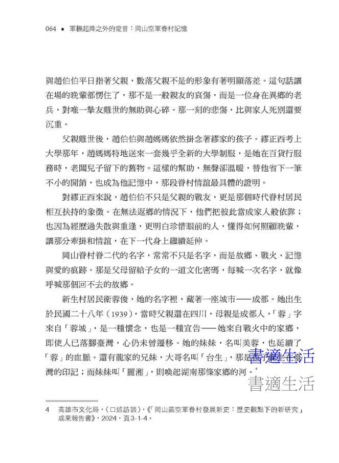 這不是單純的地方誌或冰冷的歷史考證,而是一段段鮮活人物故事的拼圖。透過他們的記憶,我們得以走進那個真實又溫暖的眷村世界: