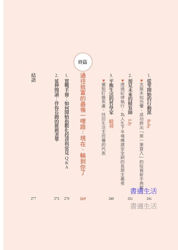 臺灣的指數化投資,自綠角推廣以來,已有15年,這本書記錄下這十多年來諸多推廣指數投資的知名人士的耕耘紀錄,就像是一本臺灣版的「柏格頭」一般,讓讀者能夠清楚了解到,臺灣這一群持續在推廣指數投資的KOL們,是如何走上這條指數投資的道路,以及實行投資時的感悟和經驗分享;也提供臺灣投資人一條更省力、省時,且容易投資成功的理財之道。