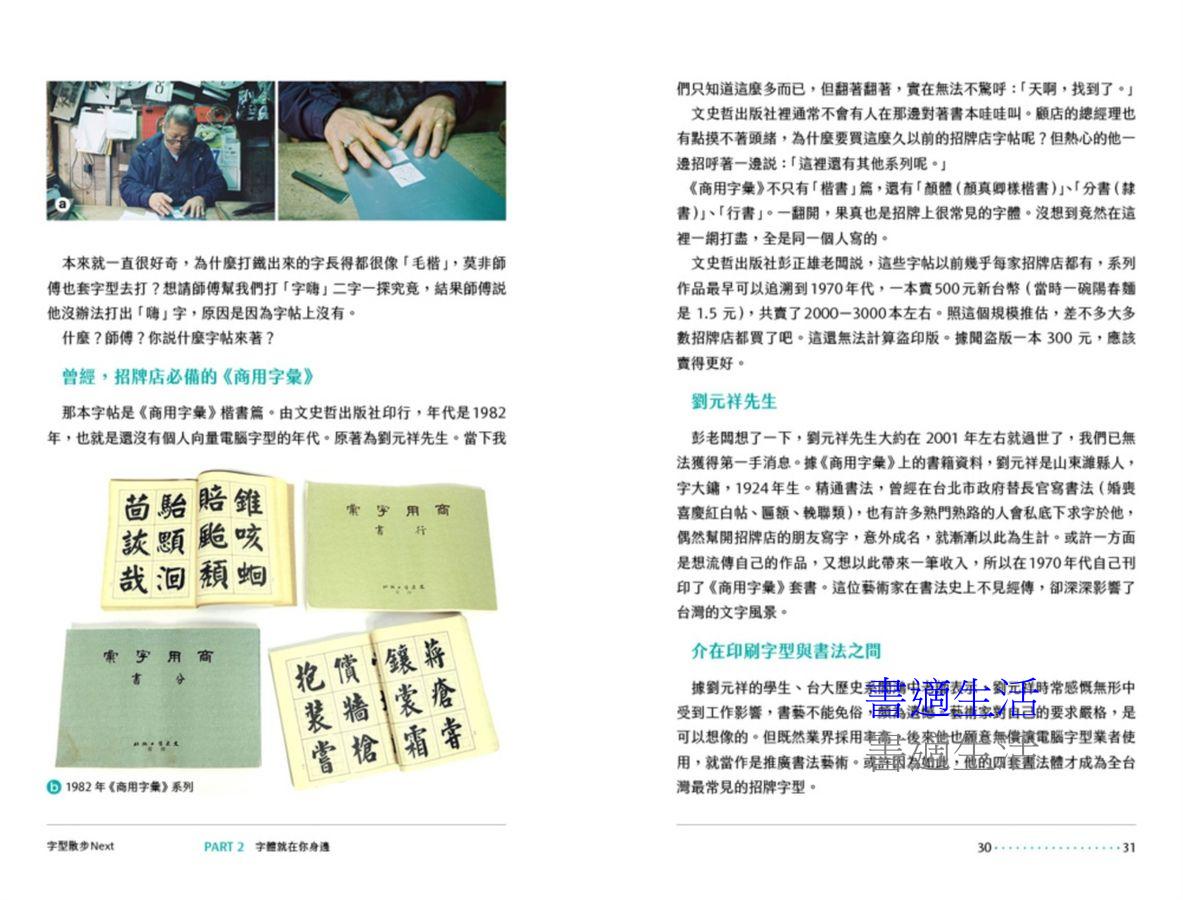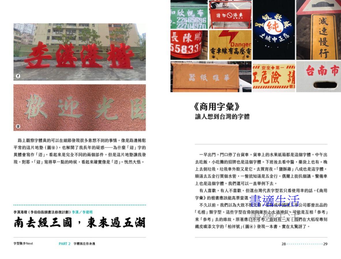 在這樣的背景之下,《字型散步》於 2014 年首次出版後獲得廣大迴響,做為一本中文字型學的絕佳入門,同時也是想了解中文文字與台灣文字風景的完全指南,至今仍是中文字型領域的必讀之作。此外,它也成為許多人的中文字體知識指定參考資料,從高中生報告到碩士論文,都看得到有這本書的幫忙。但在五年之間,字體世界的改變與進步也完全沒有停下來,因此作者們爬梳這五年來的變化,納入最新的研究成果,有了這本最新的《字型散步 Next》。