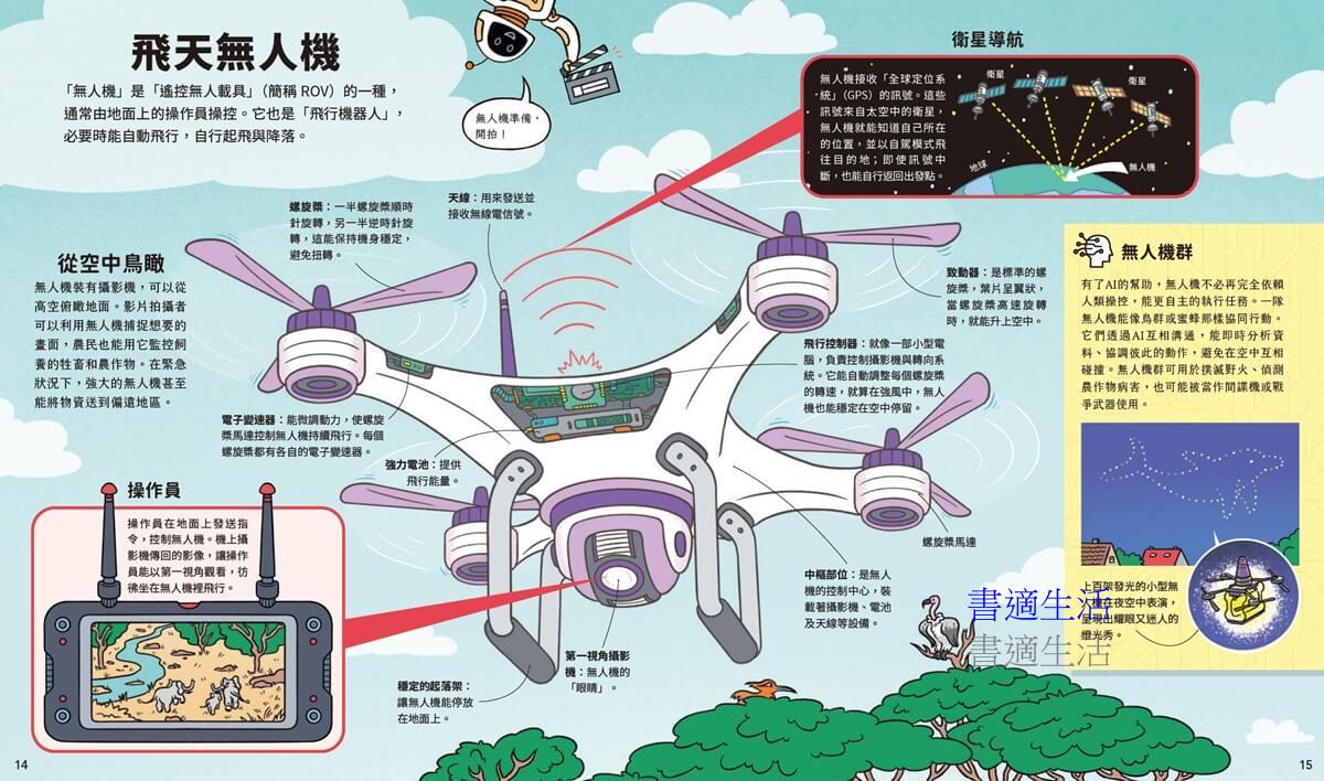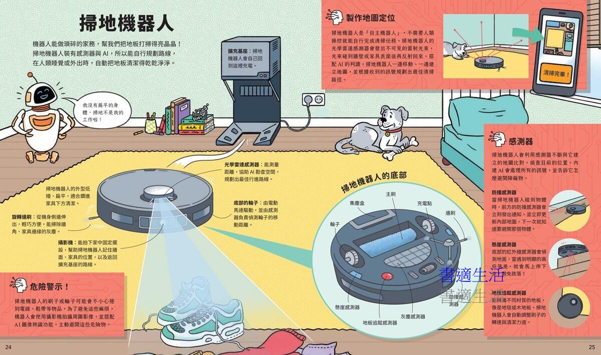 內容介紹超過25種機器人類型:精準運作的工業機器人、深入火災現場的消防機器人、探索火星的漫遊機器人、修復海底設備的水下機器人,以及醫療現場的機械手臂、突破人體極限的動力服,就連日常生活中常見的掃地機器人、智慧家庭系統與自動駕駛車都一一詳盡解析。